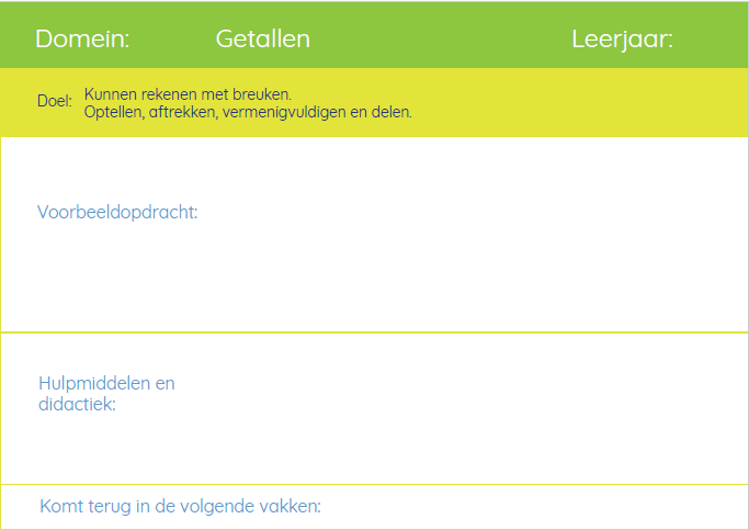 Elk rekendoel past bij verschillende vakken en komt aan bod bij wiskunde. Een rekendoel wordt in verschillende vakken behandeld, op verschillende manieren aangeboden en komt meerdere keren per jaar terug.